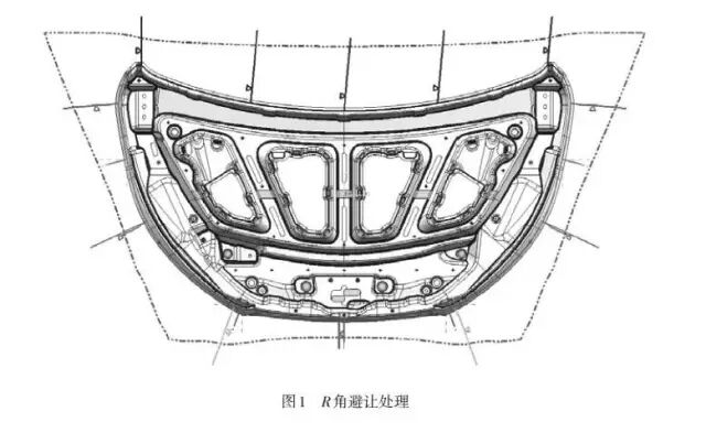 為了使制件能夠更好的在后工序模具上符型并且減少研合時間,對后工序進行R角避讓處理,處理的主要原則有如下幾條: